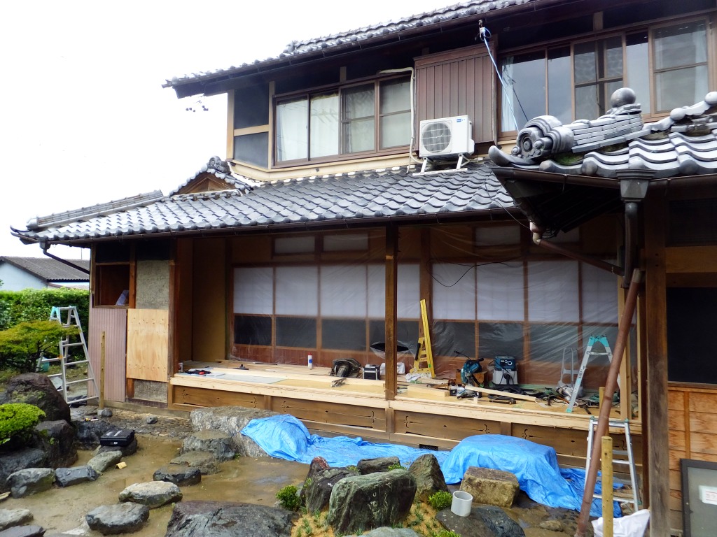岐阜 木製建具をアルミサッシにするリフォームをしています