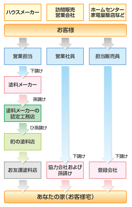 工事の管理は下請けさん任せで、塗装の知識に乏しい人が営業担当者だったりします。
