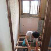 1階のトイレの解体です。 天井・壁・床まで壊せるところは全て解体します。
