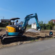 畑の境界に沿ってブロックを積みます。畑は道路より低いことが多いので、かさ上げの目的もあります。
