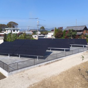 リクシル製の単結晶パネルを使い、野立ての太陽光発電システムを完成しました。